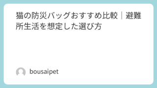 ペット用防災バッグの作り方猫の防災バッグおすすめ比較|避難所生活を想定した選び方 この記事では、猫の防災バッグについて、防災の視点から選び方や考え方を分かりやすく解説していきます。 2026.03.18ペット用防災バッグの作り方