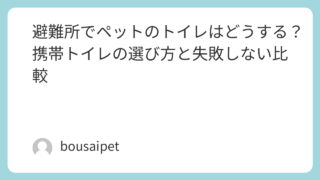 災害時のペット用トイレ管理避難所でペットのトイレはどうする?携帯トイレの選び方と失敗しない比較 この記事では、防災の視点から、携帯トイレを「比べて選びやすい形」でまとめていきます。 2026.04.02災害時のペット用トイレ管理