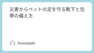 災害時のおすすめ便利グッズ災害からペットの足を守る靴下と包帯の備え方 この記事では、なぜ足元を守るアイテムが必要なのか、ペットに慣れさせる簡単な方法、おすすめの商品選びのポイントまで、わかりやすくお伝えしていきます。 2026.02.18災害時のおすすめ便利グッズ