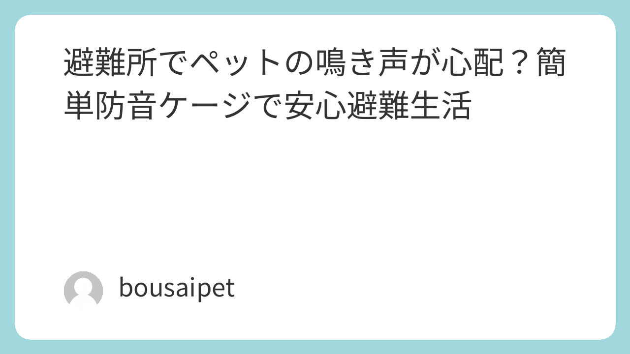 日本に住むペットを飼っているみなさんにとって、大きな地震や台風が起きたときの避難所生活は、とても心配なことですよね。ペットと一緒に避難所へ行けても、夜中にワンちゃんが吠えたり、猫ちゃんが鳴いたりすると、周りの人に迷惑をかけてしまうのではないか……。そんな不安を感じている飼い主さんは、実はとても多いんです。 実際に被災された方からよく聞く話では、「ペットと一緒にいたいのに、鳴き声のせいで居づらくなってしまった」「仕方なくペットを車に置くしかなかった」という経験談が少なくありません。 でも、今から少し準備をするだけで、この問題をかなり減らすことができます。その一番効果的な方法が、自分で作る「防音ケージ」です。 本記事では、災害前に防音ケージを準備する大切な理由から、日頃からできる鳴き声対策、おすすめの商品と材料、作り方の詳しい手順、そしてペット全体の防災準備までを、わかりやすく丁寧にご紹介していきます。これを読めば、ペットと一緒に安心して避難所で過ごせる準備が整いますよ。