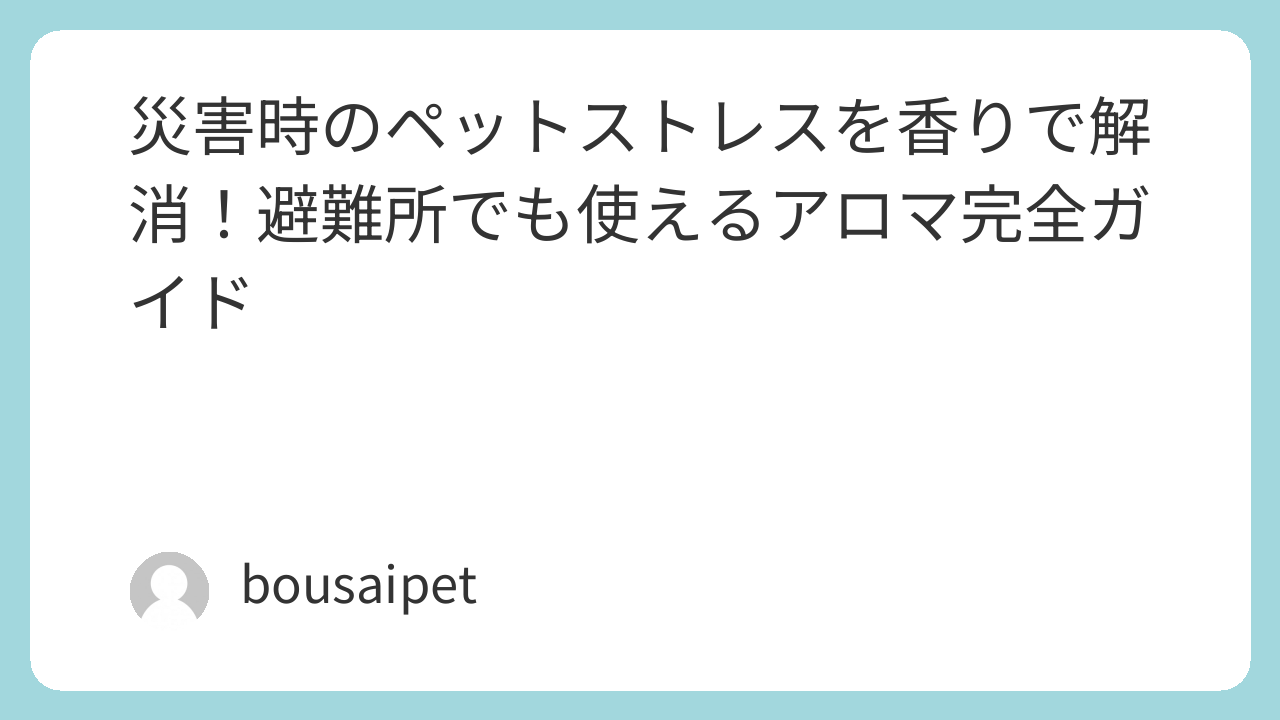 アロマの優しい香りは、災害が起きたときの不安やストレスを、自然に和らげてくれる頼もしい味方です。 日頃から少しずつ香りに慣れさせておくことで、ペットはその香りを「安心できる合図」として覚えてくれます。 おすすめのアイテムを参考にしながら、ペットの体質や性格にぴったり合うものを選んでみましょう。小さな習慣の積み重ねが、大きな災害のときに本当に大きな安心感につながりますす。さっそく今日からアロマ防災を始めてみませんか。