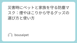 ペットと家族を守る防塵マスク災害時にペットと家族を守る防塵マスク:煙やほこりから守るグッズの選び方と使い方 この記事では、災害時の煙やほこりからペットと家族を守る防塵マスクの選び方や使い方を、わかりやすくご紹介していきます。 2025.09.21ペットと家族を守る防塵マスク