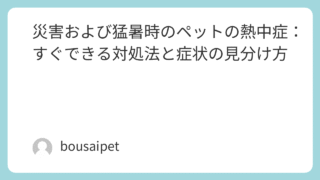 ペットの熱中症の早期発見災害および猛暑時のペットの熱中症:すぐできる対処法と症状の見分け方 この記事では、災害及び猛暑時にペットの熱中症にすぐ対応する方法、症状の見分け方、家庭でできる応急処置、予防するための準備をわかりやすくお伝えしていきます。 2025.09.19ペットの熱中症の早期発見