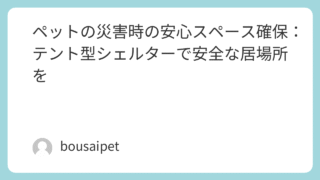 ペット用簡易シェルターペットの災害時の安心スペース確保:テント型シェルターで安全な居場所を この記事では、なぜ事前に簡易ハウスの準備が必要なのか、準備しないとどんなリスクがあるのか、そしておすすめの商品をわかりやすくお伝えしていきます。 2025.11.01ペット用簡易シェルター