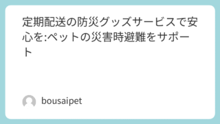 定期配送の防災グッズサービス定期配送の防災グッズサービスで安心を:ペットの災害時避難をサポート 定期配送サービスの特徴や使い方、そしてペットの安全を守るための具体的な防災対策をわかりやすくご紹介していきます。 2025.09.17定期配送の防災グッズサービス