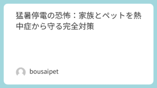 災害時における猛暑対策猛暑からペットと家族を守る熱中症対策:40℃超えを想定した事前準備 この記事では、40℃超えの猛暑での熱中症対策、ペットと家族のための具体的な準備品や行動、この先の更なる猛暑に対応する新たな対策を詳しくご紹介していきます。 2025.08.21災害時における猛暑対策