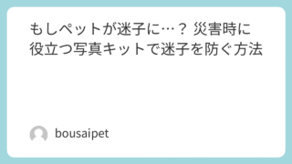 迷子予防と捜索もしペットが迷子に…? 災害時に役立つ写真キットで迷子を防ぐ方法 この記事では、「ペットの防災ガイド」の一環として、災害前に写真を準備する理由やその大切さ、具体的な作り方、そして便利なグッズをわかりやすくご紹介していきます。 2025.11.03迷子予防と捜索