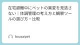 | 小動物 | 元気さ、食事、トイレ | メモアプリ、ペン | 車内、復旧後 | 環境の影響、ストレス管理 |