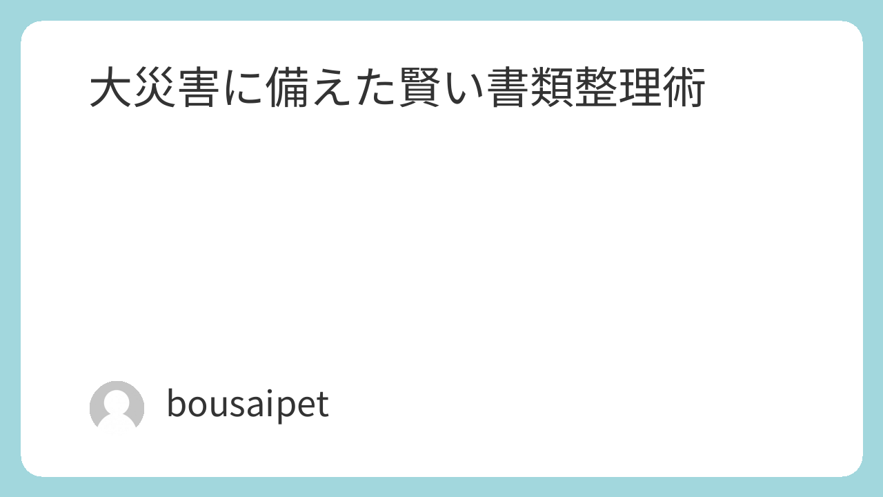 書類を整理しておけば、災害時でも必要な書類をサッと取り出せて、生活再建やペットの安全確保がスムーズになります。防水処置で書類を守り、持ち運びやすくし、デジタルで保存しておけば、いざという時にすぐに対応ができます。
