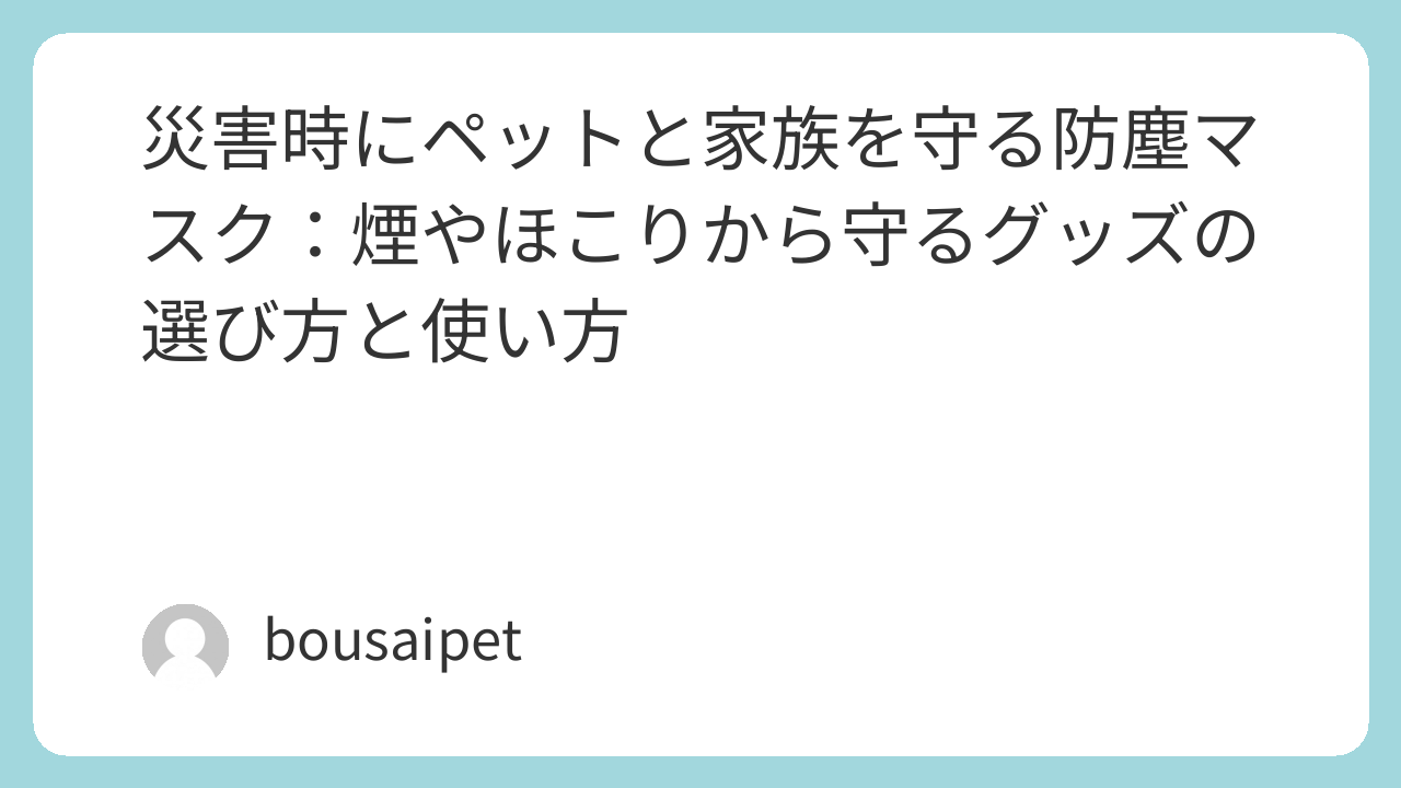 災害時の煙やほこりからペットと家族を守る防塵マスクは、災害時の必須アイテムといえます。以下のポイントを参考に、さっそく今日から準備を始めてみましょう。