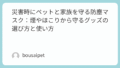 | 項目 | 人間の対策 | ペットの対策 | 準備グッズ |