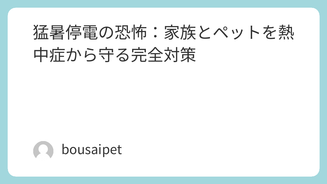 猛暑停電の即時対策:家族とペットの熱中症予防