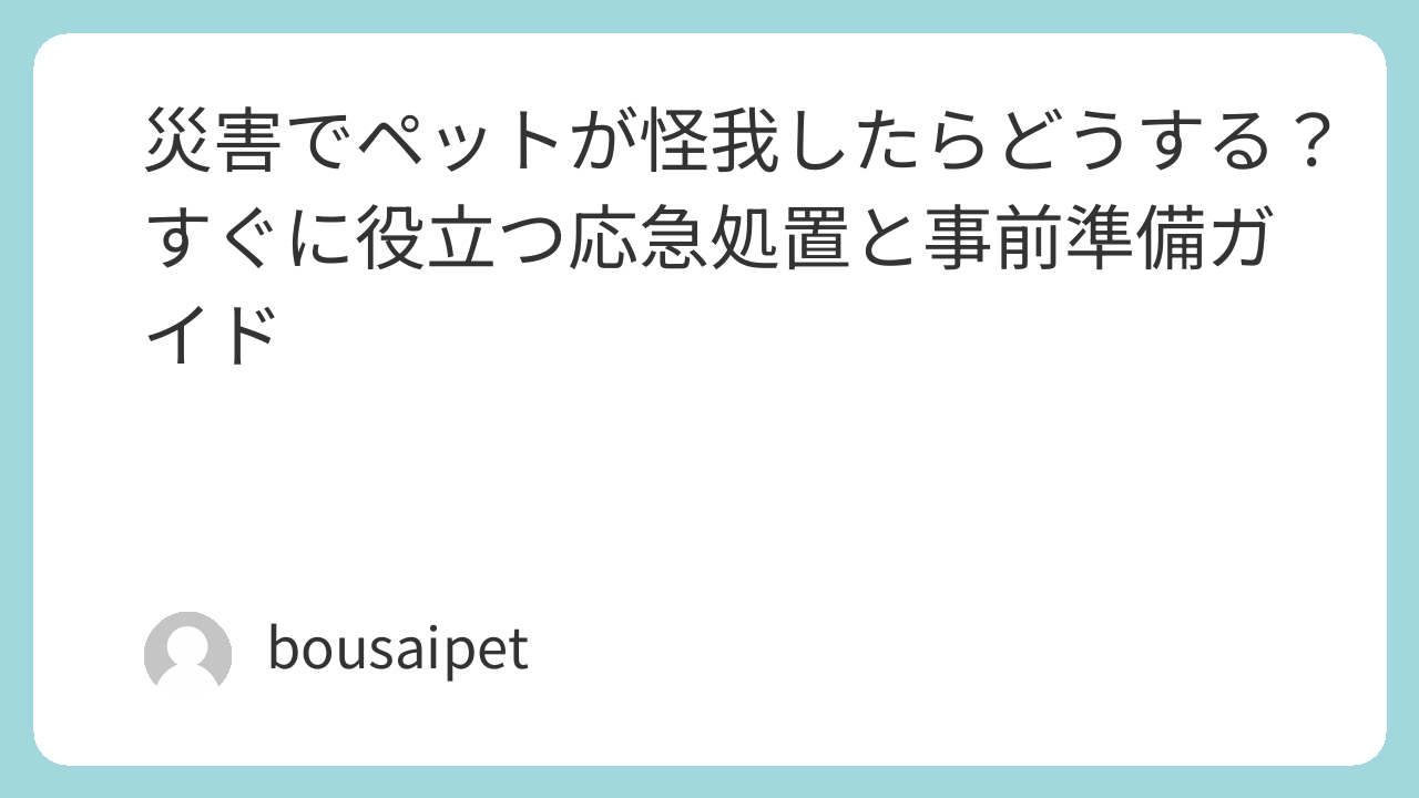 災害時の怪我は、いつでも誰にでも起こりうることです。でも、日頃の習慣と事前の準備があれば、ペットの痛みを最小限に抑え、回復を早めることができます。 この記事でご紹介したグッズや方法を、少しずつ取り入れていただければ、きっと大きな安心につながるはずです。 今日から一つずつ始めていきましょう。大切な家族の一員であるペットと、どんなときも一緒にいられるように。準備を進めることで、いざというときに「やっておいて本当によかった」と、心から思える日が必ず来ます。