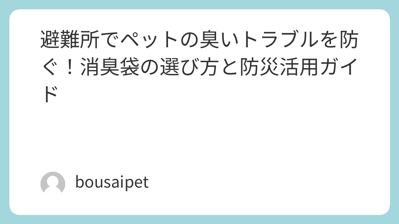 災害時の避難所では、ペットの排泄物の臭いが周囲の人とのトラブルやペット自身のストレスにつながりやすいため、消臭袋の準備が欠かせません。特にBOSのような医療技術由来の強力防臭袋が効果的で、排泄物を入れて空気を抜き、しっかり結ぶだけでほぼ無臭にできます。こうした使い方を日常の散歩後から習慣づけておけば、災害時も自然に気楽に対応できるようになります。さらに、ペットシーツと組み合わせれば簡易トイレが簡単に作れるので、在宅避難や避難所での活用も広がります。ストックをローテーションさせて常に新鮮な状態に保ち、避難所のルール(二重袋にしたり「排泄物」と明記したりするなど)に沿って処理すれば、周囲への配慮も自然にできます。早めの備えがペットの衛生を守り、飼い主さんの安心感を高め、周囲との調和を保つ鍵となります。ペットは大切な家族です。小さな準備の積み重ねが、どんな災害時でもペットと飼い主が安心して快適に過ごせる未来を守ってくれます。皆さまと愛するペットが、いつも幸せで安全でありますように。