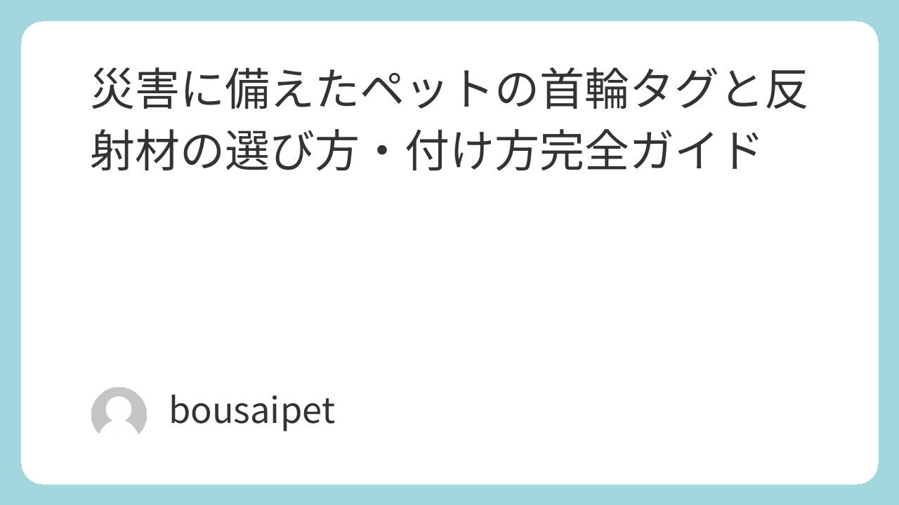 突然の災害でペットが驚き、逃げ出してしまうことはけして珍しくありません。迷子になったペットは飼い主との再会が難しく、命の危険にさらされることもあります。この記事では、首輪タグと反射材を使った迷子防止の方法を、初心者の方にもわかりやすくお伝えしていきたいと思います。