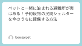 ●ペット専用の避難所がある地域(例:北九州市のペット同伴専用避難所)を優先的に確認します。