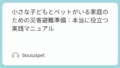 キャリー、リード、給水ボトル、保存食がオールインワンでセットになった便利なキット。防災士監修で、反射材付きのリードが夜間避難に役立ちます。楽天やYahoo!ショッピングで販売中。初心者でもすぐに準備できます。