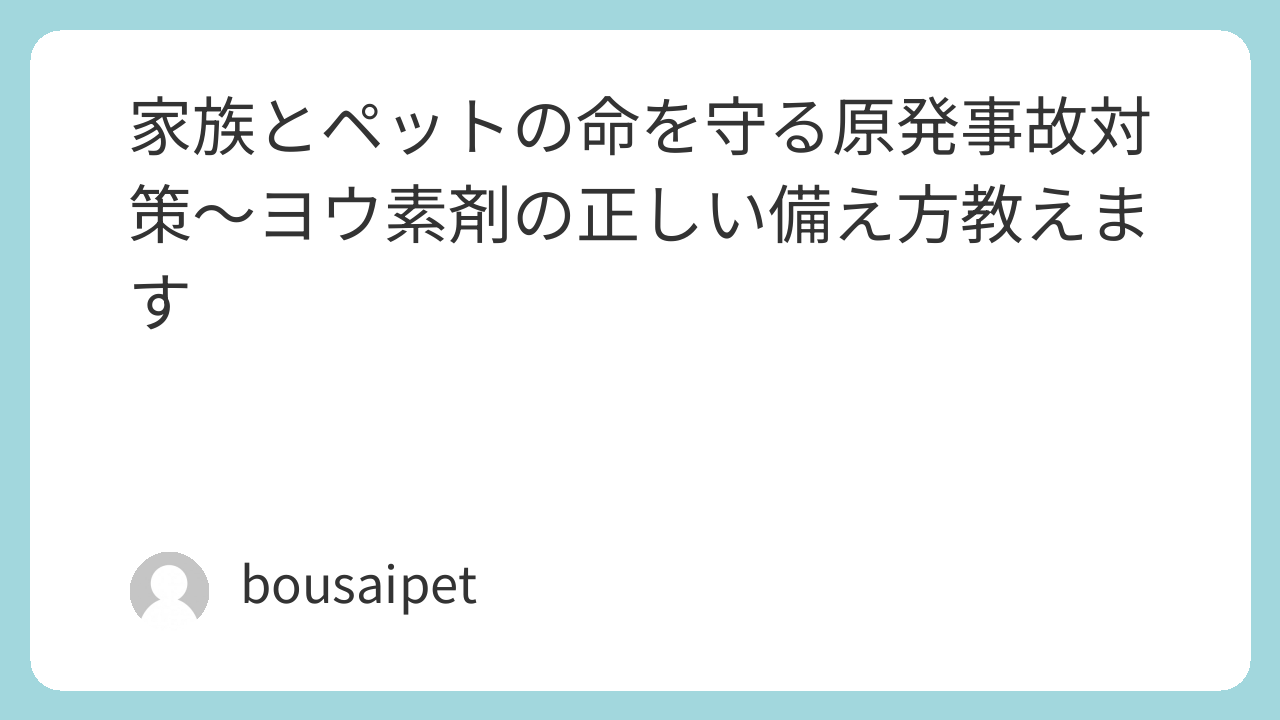 ・キャリーに「ペット用ヨウ素剤準備済み」と書いたカードを貼っておく。