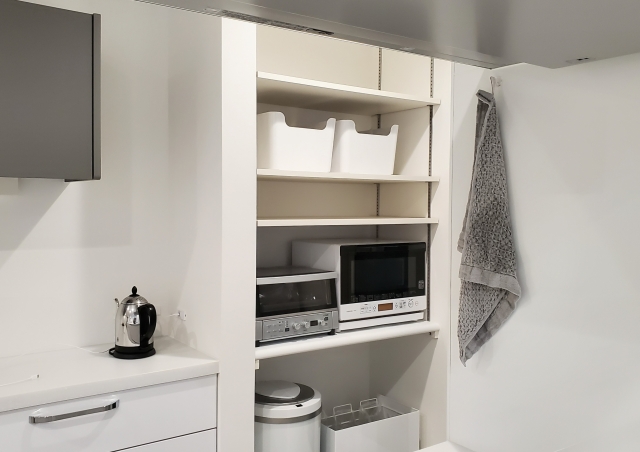 電子レンジやトースターを棚に移動しておきます。