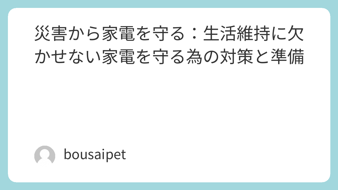 災害が起きて停電や浸水などで家電が壊れてしまった場合、家族の日常生活やペットの環境に大きな影響を及ぼす事は間違いない事だと思います。この記事では、停電や水害から家電を守る為の簡単な方法をわかりやすくお伝えしていきます。