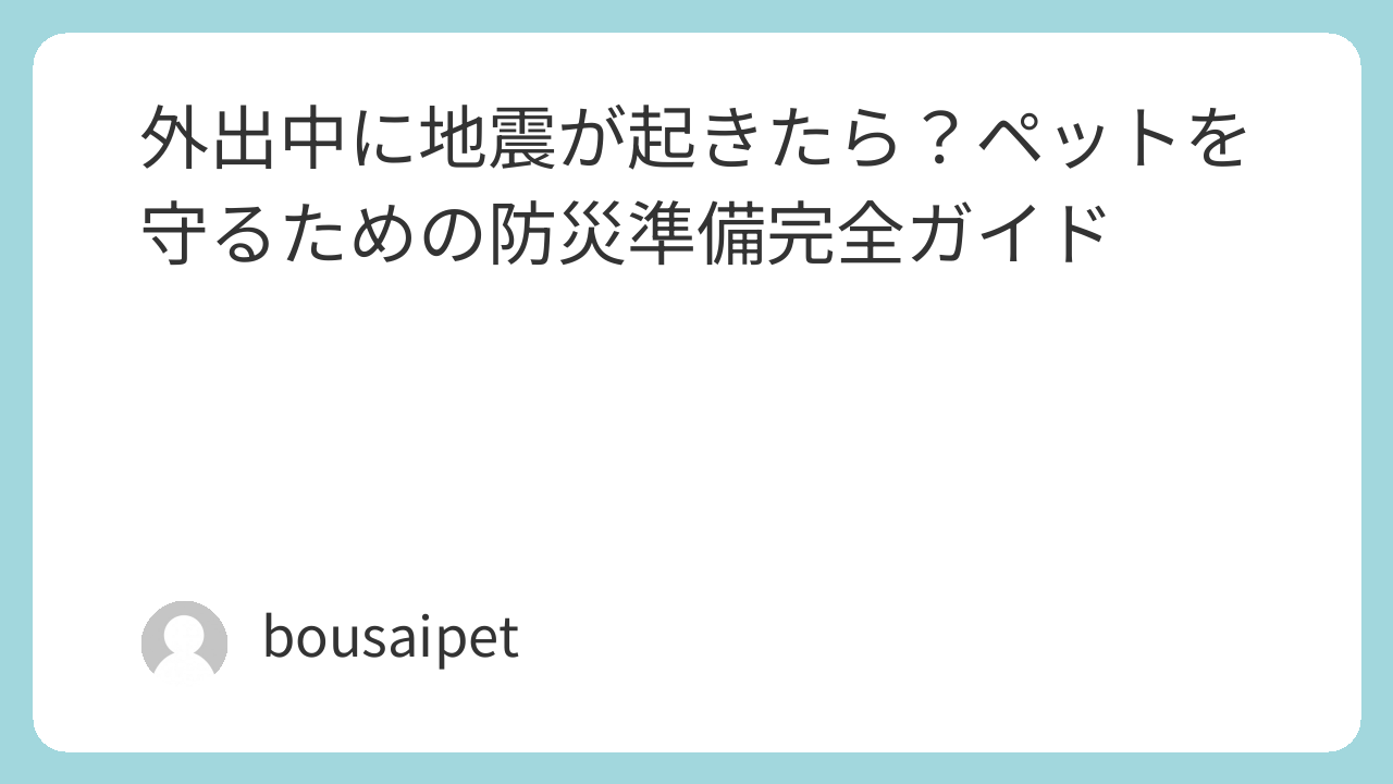 外出中に大きな災害が起きて家に帰れなくなったとき、ペットを守るための準備は飼い主の大切な責任です。これまで紹介したように、