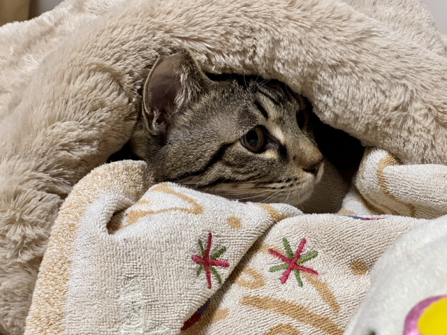 避難生活の緊張や環境変化で、元に戻った後も警戒心が強くなったり、食欲がなかなか戻らなかったりすることがあります。普段の性格とは違う行動(隠れる、吠える、震えるなど)が見られる場合も。。