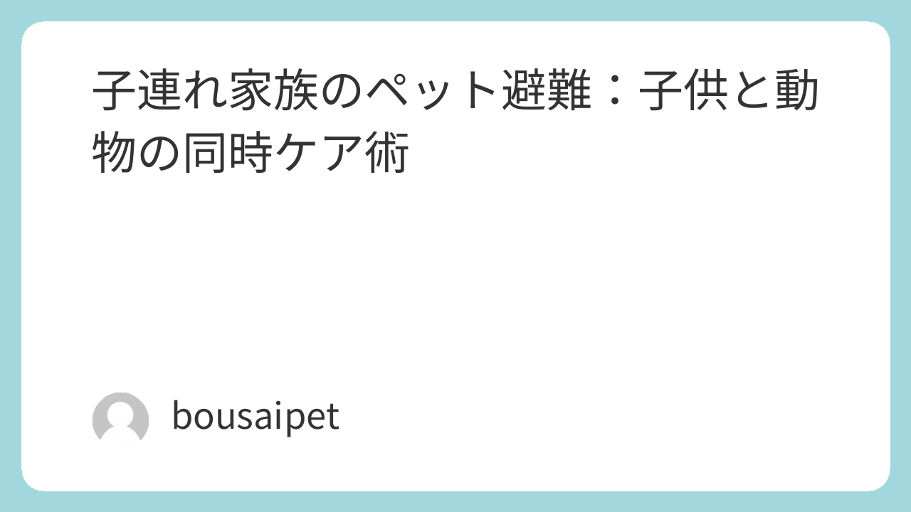 地震や台風、洪水といった緊急時に、子供とペットの両方を守りながら避難するのはとても大変ですよね。子供の安全を確保しつつ、ペットの健康面やストレスにも気を配るには、事前の準備が必要になってきます。この記事では、子連れ家族がペットと一緒にスムーズに避難するための方法や、子供とペットの同時ケアのコツをわかりやすくお伝えしていきます。