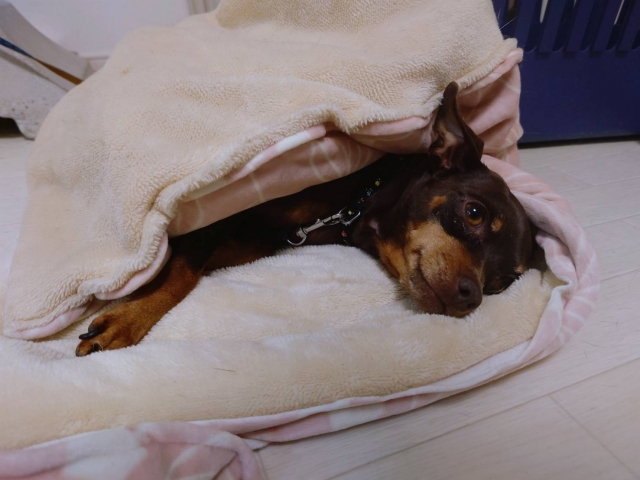 小型犬はSサイズの湯たんぽ、10kg以上の中型犬はLサイズの防寒ベストが目安です。