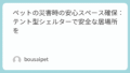 でない場合が多く、屋外テントを使うこともあります。ペットは体温を保つのが苦手な