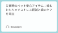 グッズを防水袋に入れ、家族用とペット用を色分けします(例: 青=家族、赤=ペット)。バッグの外側に内容リストを貼り、中身が一目でわかるようにしておきましょう。