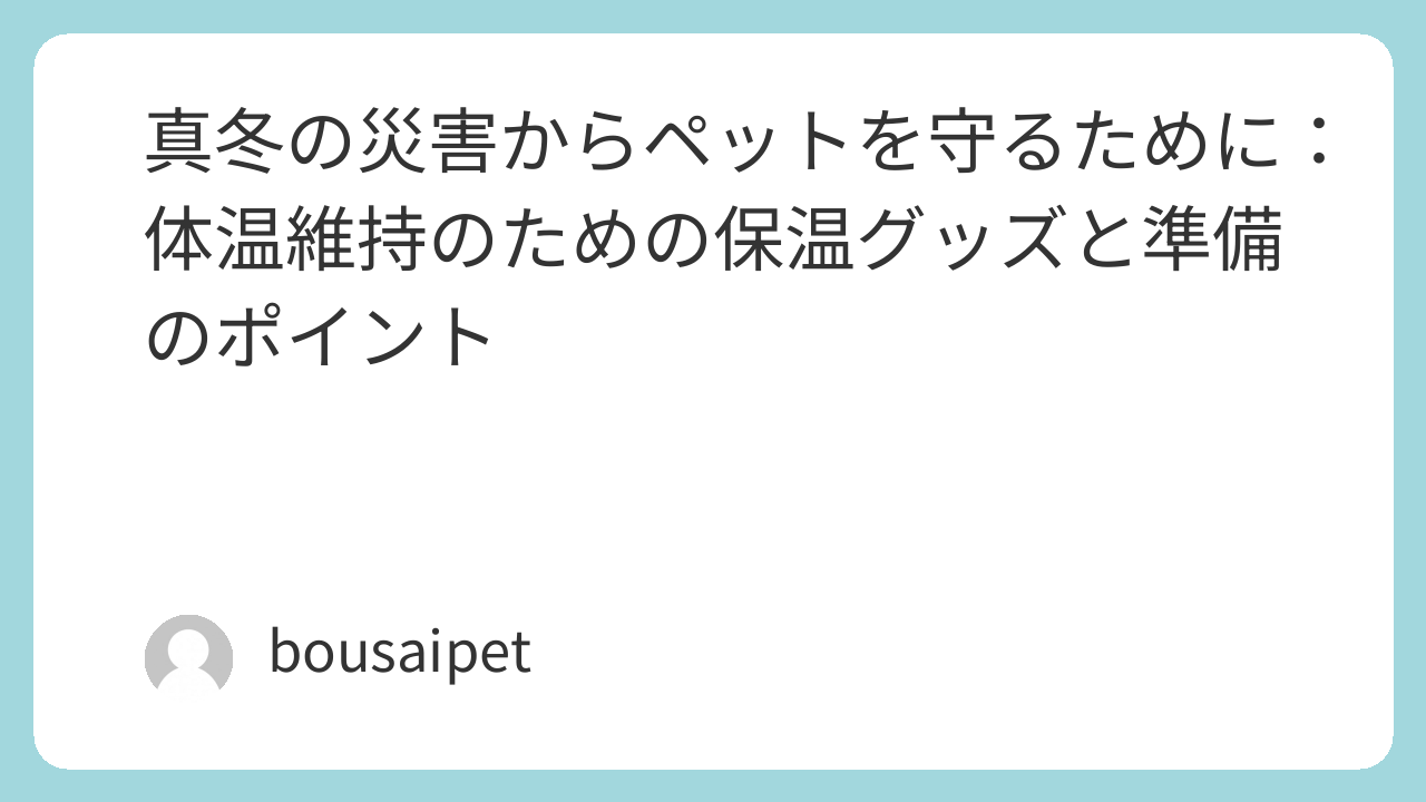 冬の寒い時期に災害が起きた場合、避難所や屋外で過ごす時間が増えると、ペットの体が冷えてしまうことが心配になります。そこで、事前に保温グッズを準備しておくことが