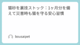 災害時に猫砂がなくなって、衛生が保てなかった。