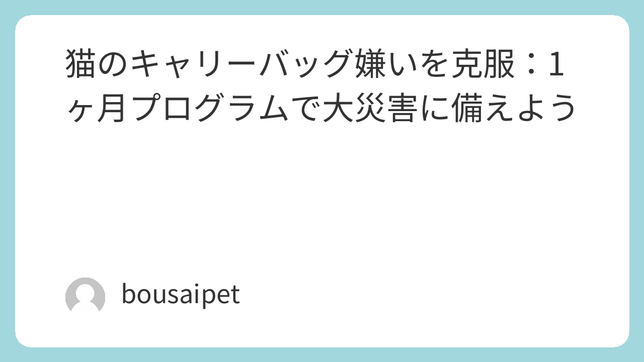 通院やお出かけ、もしもの災害時には、キャリーバッグが欠かせません。でも、多くの飼い主さんがお悩みのように、猫さんがキャリーバッグを嫌がって入らないことがあります。そこで、少しずつ怖さをなくし、猫さんの心の負担を減らしてあげましょう。この記事では、そんなキャリーバッグ嫌いを1ヶ月で克服するためのステップ別プログラムをお伝えします。また、災害前に慣らしておく大切さ、準備しない場合の心配事、日頃の習慣、おすすめのグッズも一緒にご紹介します。