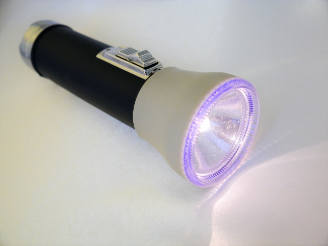 手に持ってピンポイントで照らせます。LEDで100~200ルーメン、単三電池4本で8時間以上使えます。