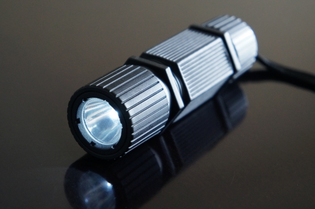 小型LEDライト(1,500円程度)。150ルーメン、10時間持つ、防水仕様。