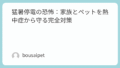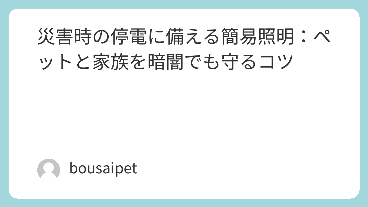 地震や台風、洪水で夜に電気が止まった時、真っ暗な中で家族やペットと一緒に過ごしたり、避難するのは本当に大変です。犬や猫は暗闇でビックリして逃げ出しちゃうかもしれないし、移動途中の瓦礫などでケガをする危険性もあります。この記事では、災害時の停電でペットと家族を守るための簡易照明の選び方や使い方、準備のコツをたっぷりご紹介していきます。