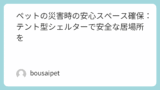 ペット用の簡易シェルターは、災害時にペットの安全と安心を守る大事なアイテムになります。さっそく以下の項目を実践してみましょう。