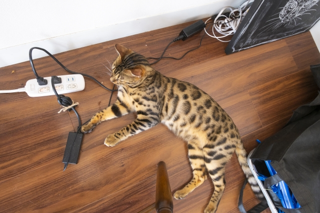 特に子犬や若い猫は好奇心旺盛で、電気コードを玩具のように噛んでしまいます。コードが傷つくとショートして火花が出て、そこから火事につながるケースが実際に多く報告されています。冬場に延長コードやホットカーペットのコードが増える時期は特に注意が必要です。