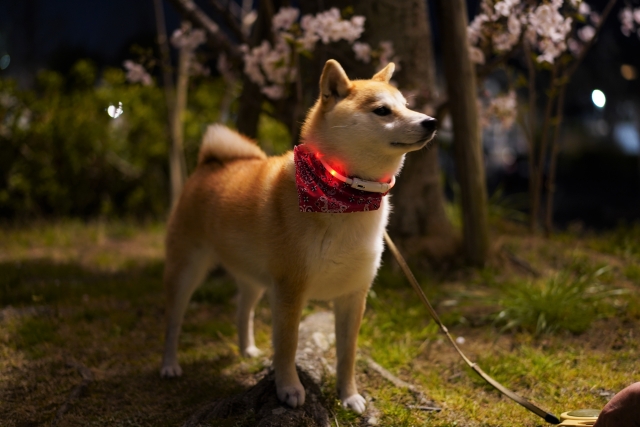 うちのこエレクトリック社の充電式LED首輪で、夜間避難時の視認性向上に。
