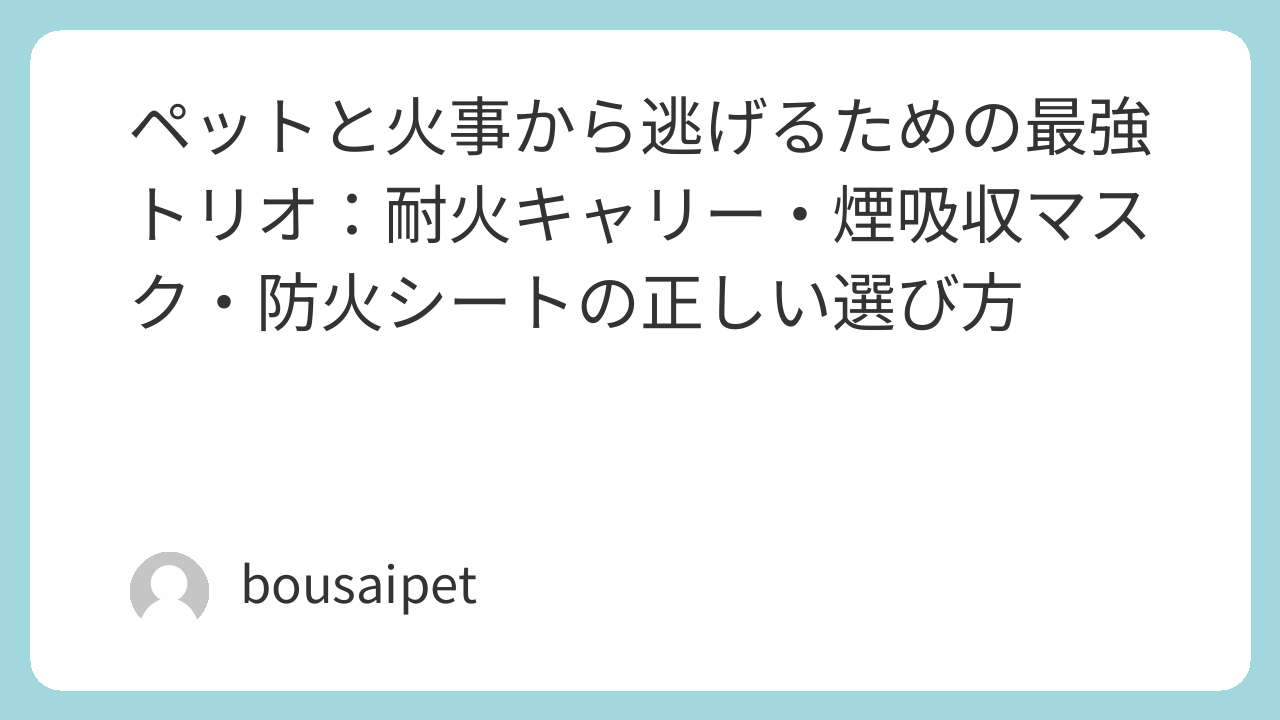 ペットと火事から逃げるための最強トリオ:耐火キャリー・煙吸収マスク・防火シートの正しい選び方