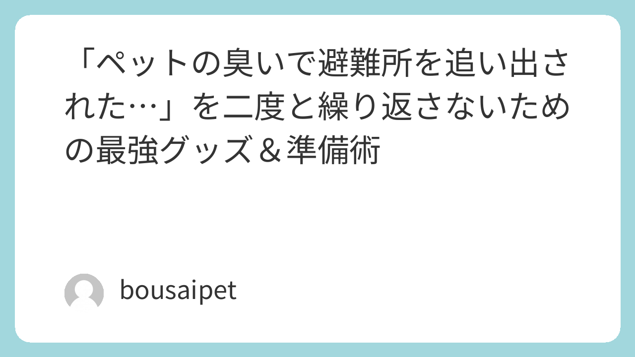 災害時の臭い対策は、ペットとの避難生活を大きく左右します。しっかり準備しておけば、狭い避難所でも排泄物の臭いを気にせず過ごせますし、ペットも落ち着いていられます。周りの方とも気まずくなることがなく、何より大切な家族と離れずにいられる安心感がまったく違います。ぜひ今日から、防災バッグに消臭スプレー1本と防臭袋20枚を入れてみましょう。たったこれだけのことで、いざというときに「臭わず過ごせて本当に良かった」と心から思えるはずです。完璧じゃなくても大丈夫。できることから少しずつ始めていきましょう。