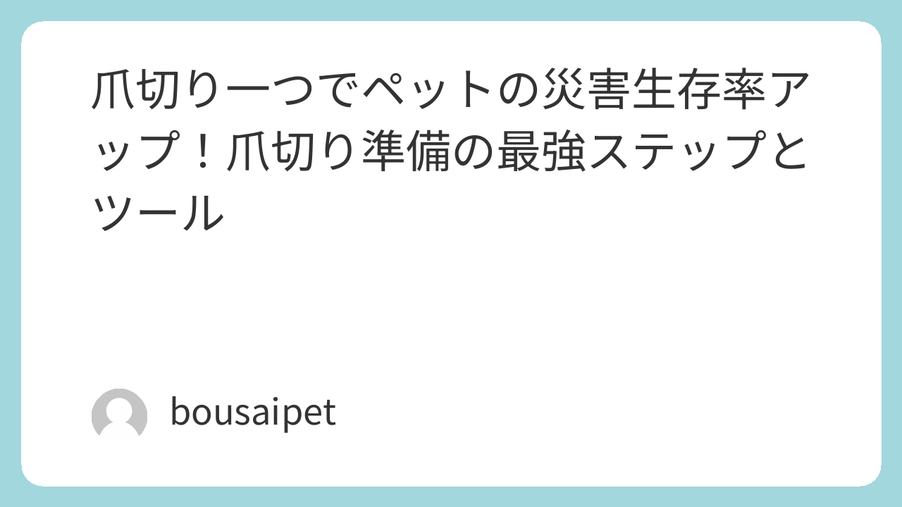 お住まいの自治体のペット同伴避難所情報や、近くの動物病院の場所を事前に調べておきましょう。爪切りが必要になったときの代替手段(たとえば近所のサロンや病院)も考えておくと、いざというときの心の余裕が違います。