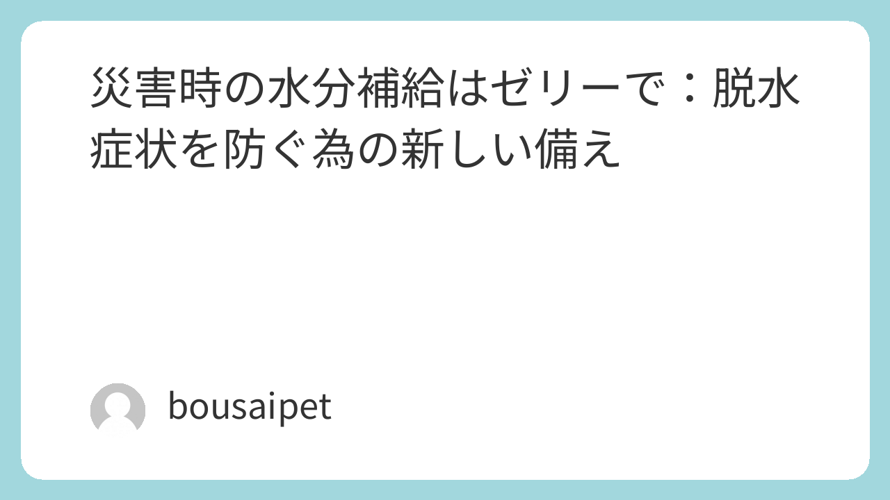 災害が発生すると、断水や避難によりペットの水確保が難しくなる為、脱水症状の心配が出てきます。ペット飼い主さんは水やフードの準備には気をつかいますが、「水分補給ゼリー」は意外と見落としがちです。この記事では、災害前にゼリーを用意すべき理由、準備しない場合のリスク、その重要性、そして家族とペットにおすすめの商品をご紹介していきます。