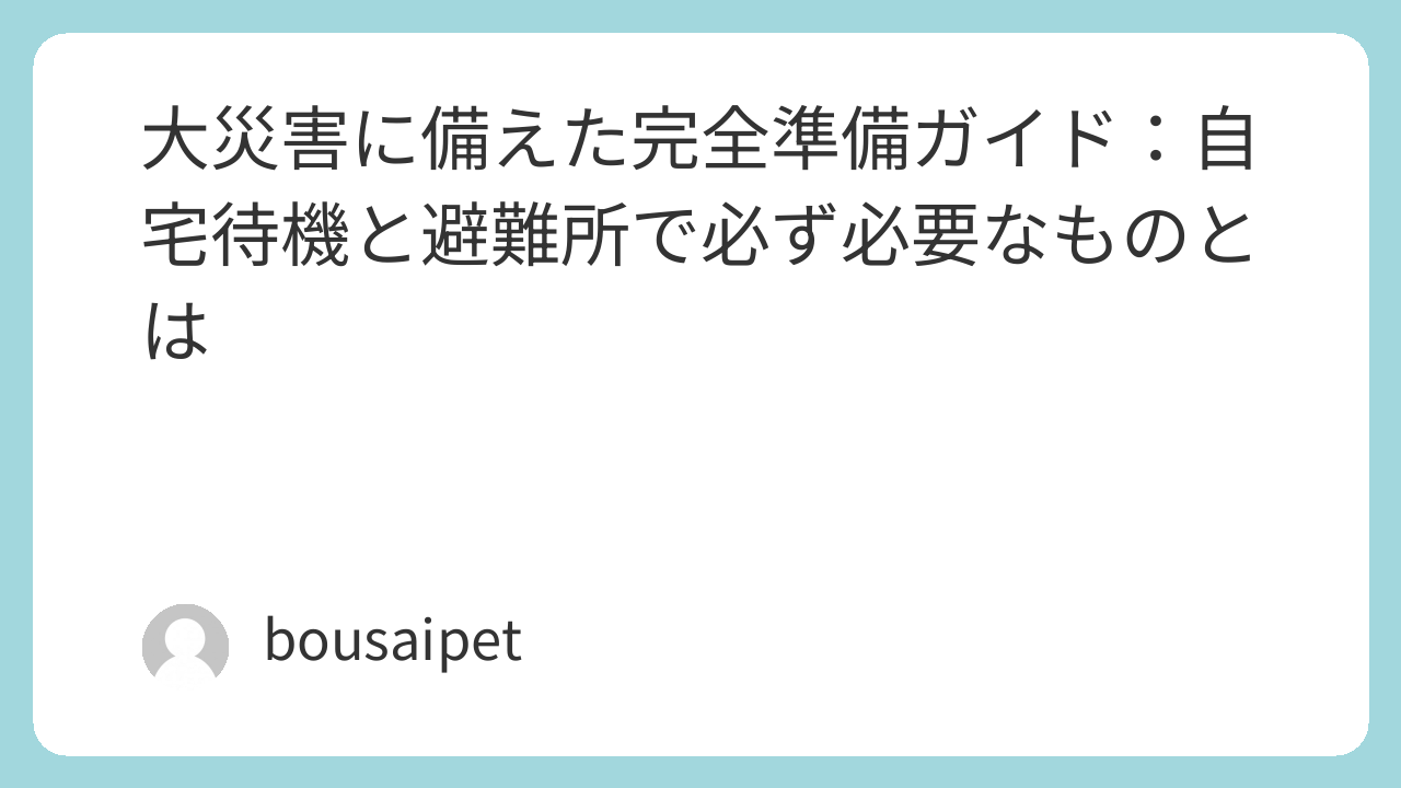 大災害では、全国で数万件規模の住宅が被害を受け、多くの人が自宅で待機したり、避難所へ移動する事態になります。状況に応じて自宅に留まるか避難所に行くかを判断する必要がありますが、どちらを選んでも事前の準備が命と生活を守る鍵となります。特にペットは環境の変化に弱く、食料や水が不足すると体調を崩しやすく、家族の心の負担も増える事になります。この記事では、自宅待機と避難所生活で必要な準備、準備しない場合のリスク、家族とペットにおすすめのグッズなどをご紹介していきます。