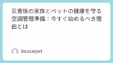 避難所はスペースが限られるため感染リスクが高くなります。そのため防塵マスクや除菌シートが必須になります。ペットはキャリーバッグで待機し、排泄処理を徹底しましょう。衛生管理が不十分だと、皮膚病やストレスが家族にも波及してしまう場合もあります。