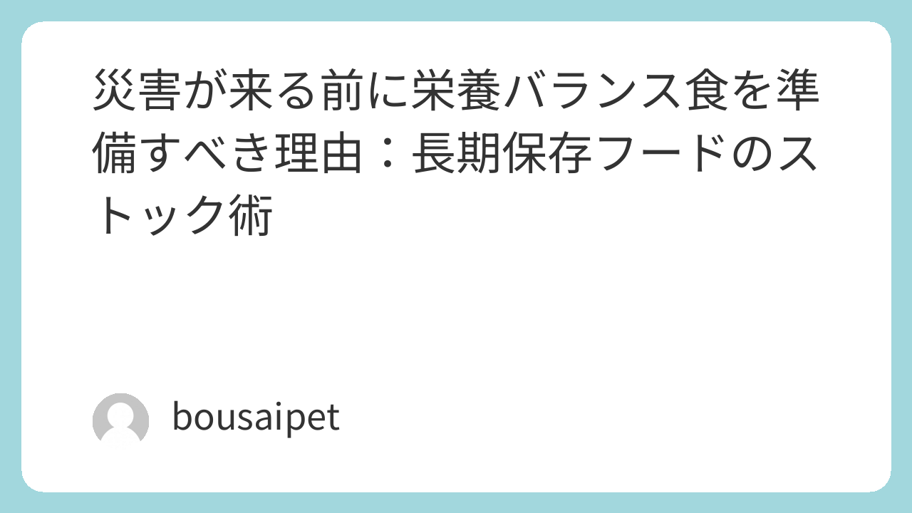 準備を怠った場合のリスク、家族とペットに適した長期保存食、そして効率的な管理方法を詳しくご紹介していきます。